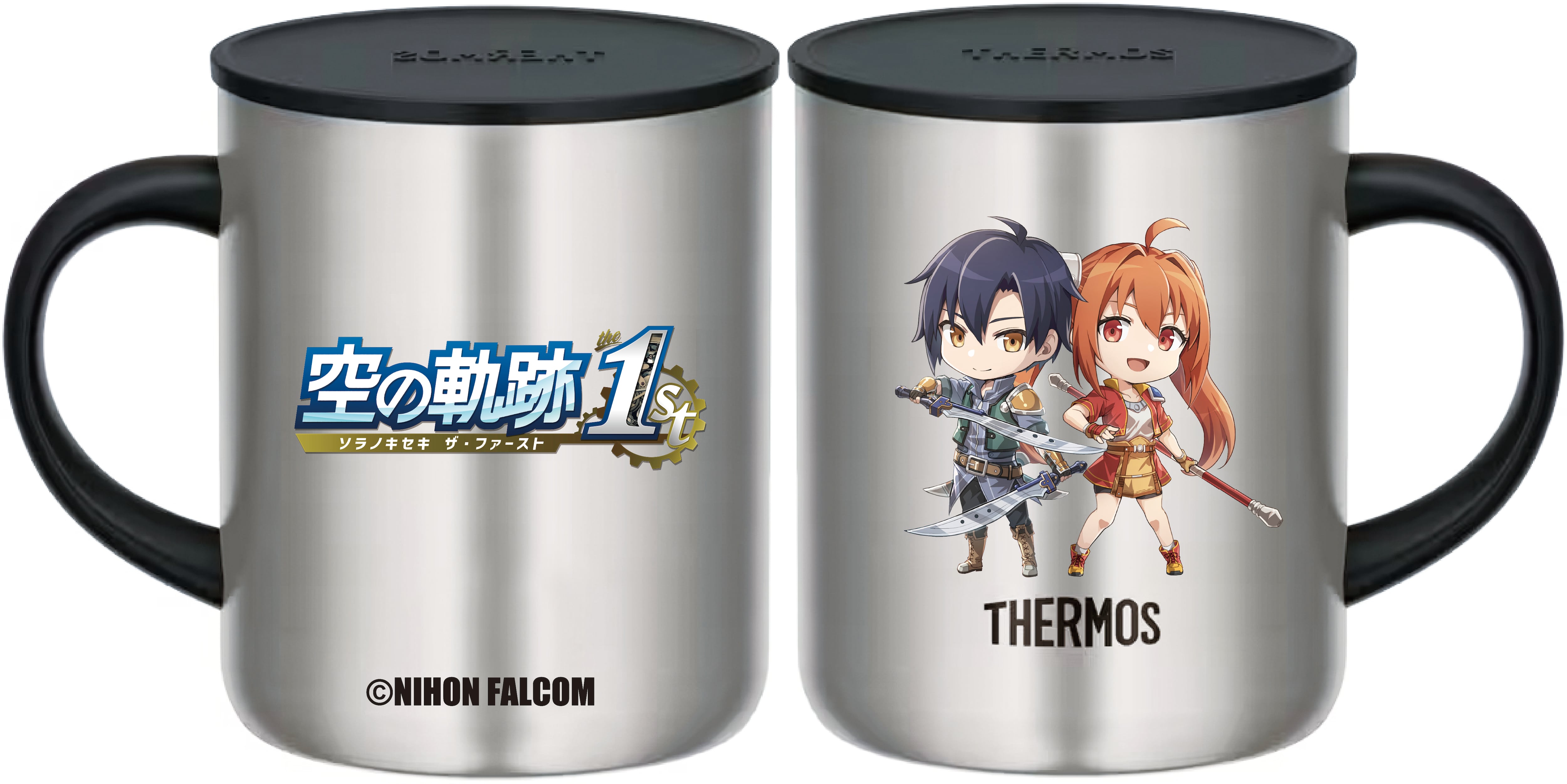 ハンドル付きなので持ちやすく、毎日の食卓で気軽に使えます。ステンレス製魔法びん構造なので、冷たさ・温かさ長持ち。「空の軌跡 the 1st 」からミニキャラのエステルとヨシュアを転写プリント。